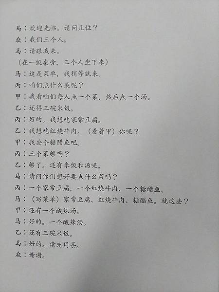 We learned how to make an order in the Chinese Restaurant and we talked about the culture part in the dialogue that Dr.ZZ wrote. Now it's your turn to make a dialogue.