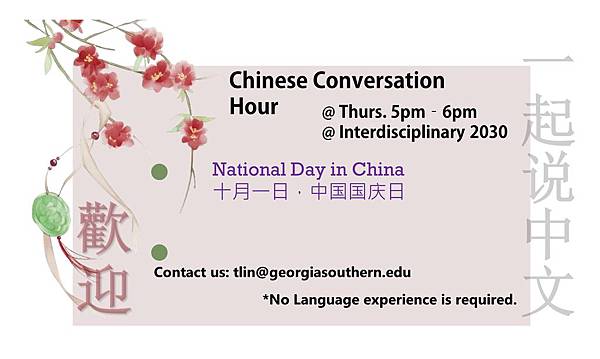 So glad we had a great time last time. This THURSDAY (1003) Ms. Pu is going to introduce National Day in China. October first is the national day of China and they will have holidays just like Chinese New Year. If you want to know what do Chinese do on their National Day or just want to practice your Chinese. WELCOME :)
